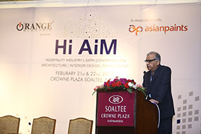 Business Session: "Sustainability Principles - Are They Relevant For Interior Designs, Lighting & Food Concept" – (From L- R) Mr. Bobby Mukherji, Sai Tallapragada, Mr. David B. Tokiwa, Ms. Sonali Bhagwati along with Mr. Naveen Jain – Moderator of the Session.